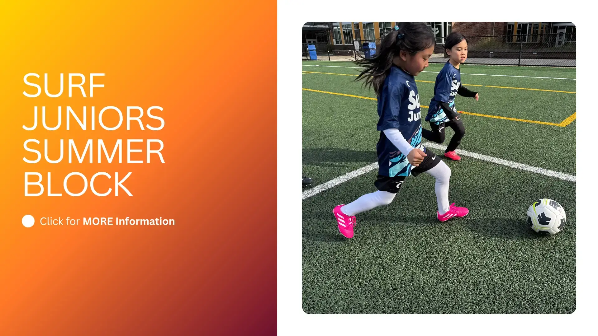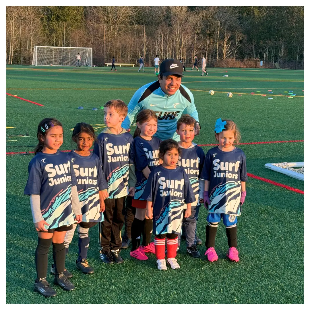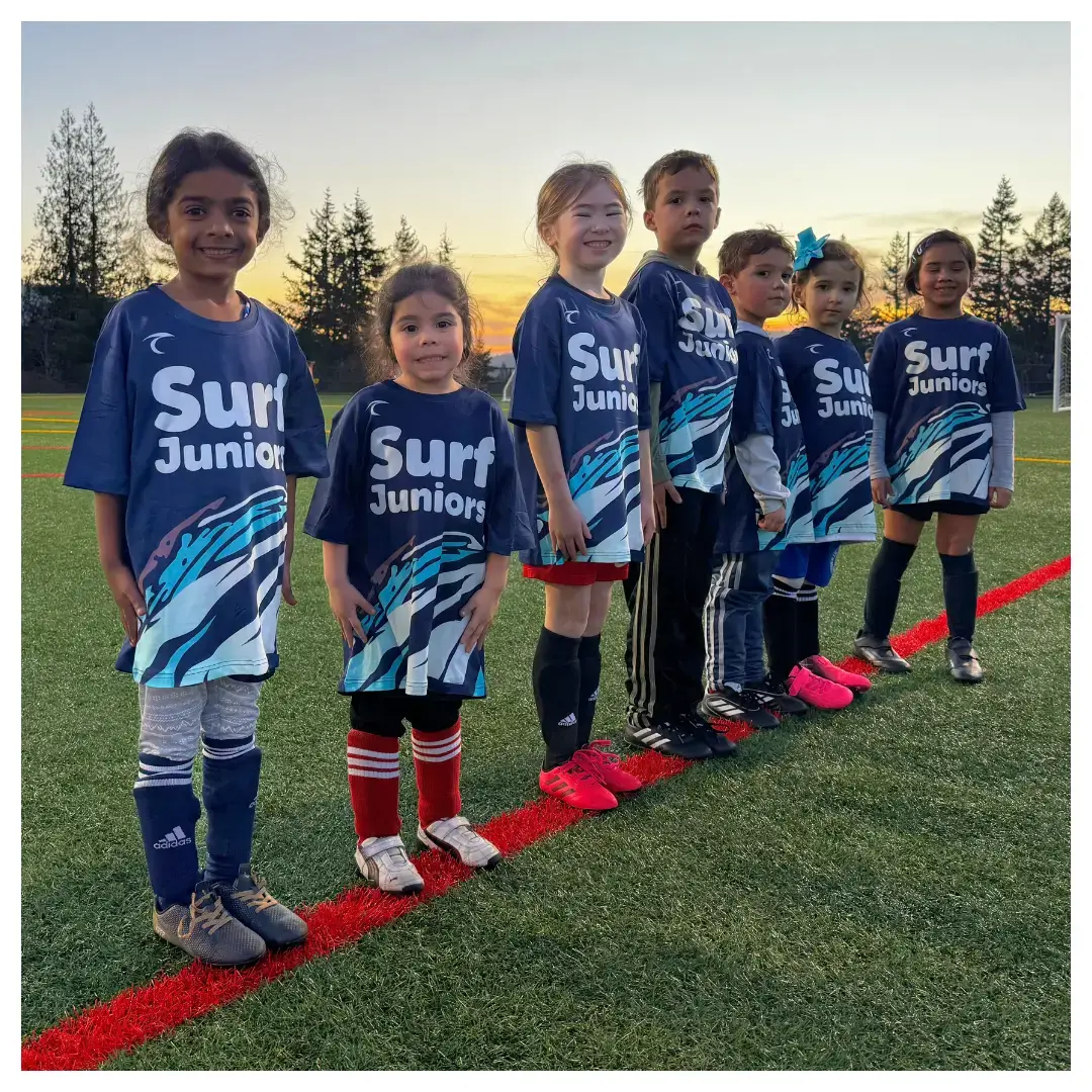 Surf Juniors is the perfect starting point for young players born in 2020 and 2021, offering a fun, skill-based introduction to soccer across multiple regional hubs. The program is free to register, with just a $25 jersey fee.